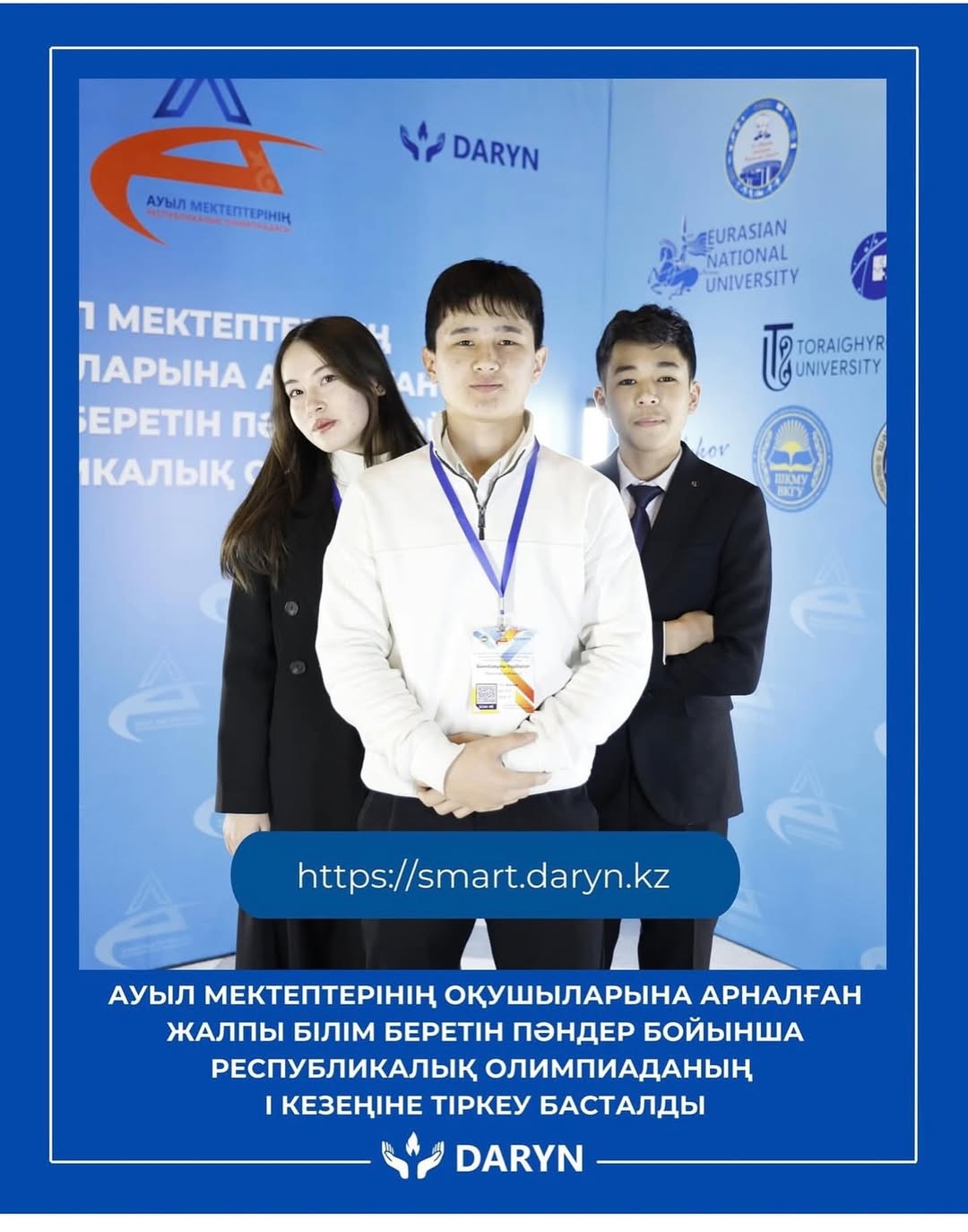 2025 жылғы 10-15 қыркүйек аралығында ауыл мектептерінің 9-11(12) сынып оқушыларына арналған жалпы білім беретін пәндер бойынша республикалық олимпиаданың І кезеңіне тіркеу жүргізіледі. Тіркелу процесі smart.daryn.kz платформасында өтеді.