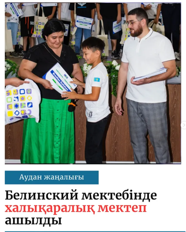 Ауданымыздағы В.Белинский атындағы орта мектеп тағы бір үлкен жетістікке жетті. Еліміз бойынша екінші және Алматы облысы бойынша алғашқы мектеп болып «GSED» халықаралық дипломдық бағдарламасын жүзеге асыруды қолға алды.